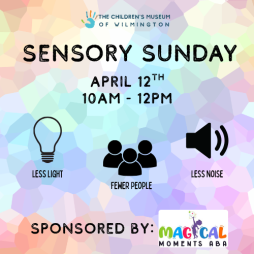 The Children's Museum of Wilmington offers a sensory friendly experience for visitors with sensory sensitivities from 10AM-12PM on selected Sundays. Enjoy The Children’s Museum of Wilmington during exclusive hours designed for children with varying sensory, developmental, or physical needs. Explore the Museum in a comfortable and accepting environment that features fewer guests, adjusted exhibits, light and sound reduction, extra visual safety signage, sound maps, and designated calming spaces.