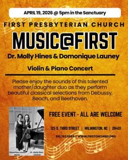 Please join Dr. Molly Hines on violin and Domonique Launey on piano as they perform beautiful classical selections from Debussy, Beach, and Beethoven. Free event and all are welcome.