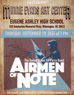 U.S. Air Force’s premier jazz ensemble, the Airmen of Note, will be performing at Minnie Evans Arts Center (MEAC) on Thursday, September 19th at 7:00 PM. This is a rare opportunity to witness one of the finest big bands in the country, right here at Ashley High School!