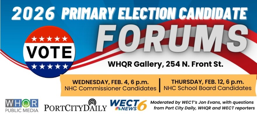 Both forums will be hosted at WHQR Gallery, 254 N. Front St., and the public is welcome to attend. We also welcome constituent questions for reporters to consider as they query candidates on issues facing the region.