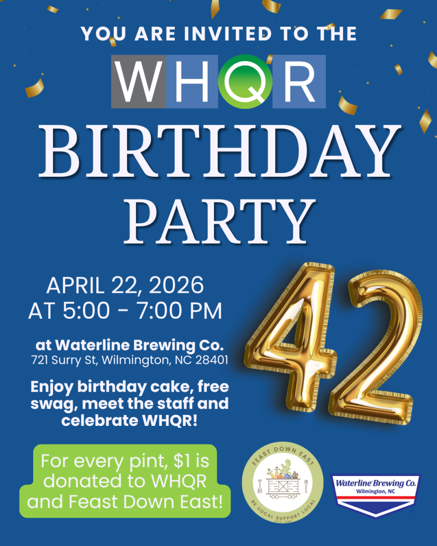 Enjoy birthday cake and raise a glass to celebrate WHQR’s forty two years on the air. Plus, for every pint, $1 is donated to WHQR and Feast Down East!