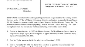 Prosecutors subpoenaed George Taylor III, whose home was the scene of a brutal double murder almost five years ago, for an upcoming trial. Taylor, who skipped out on testifying in a related case last year, asked the courts to quash the request.