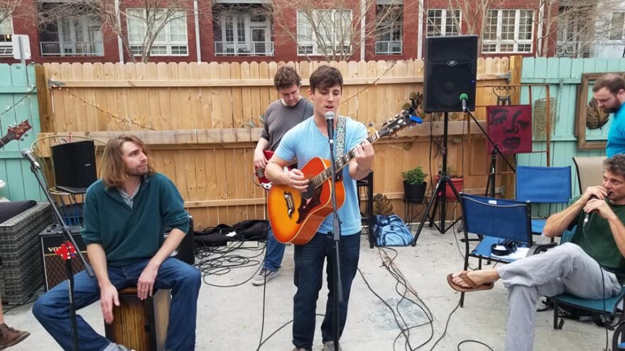 Jake Newman features Jake Newman, Tyler Fulton, Isaac Clowers and Jason West. They were recorded on the outside patio of the Bottega Art & Wine Bar.